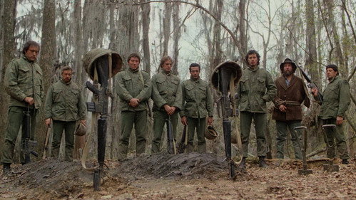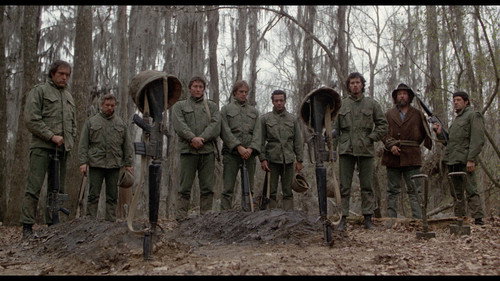 Национальная гвардия проводит учения в болотах Луизианы, где местных называют каджуны. Гвардейцы оторвались от рутинных дел и выпускают пар, бряцая оружием, как мальчишки. Один из них в шутку дал очередь холостыми по стоявшим на берегу. Но ответный выстрел был отнюдь не холостым. После этого начинаются кошмарные учения на выживание с невидимым противником, который знает каждую кочку на болоте.