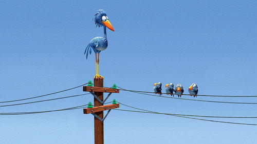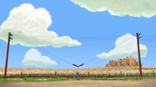 Позитивный красочный мульт, про птичек на проводе. Мелкие воробьи против Большой птички. Но хорошо смеется тот, кто смеется последний.